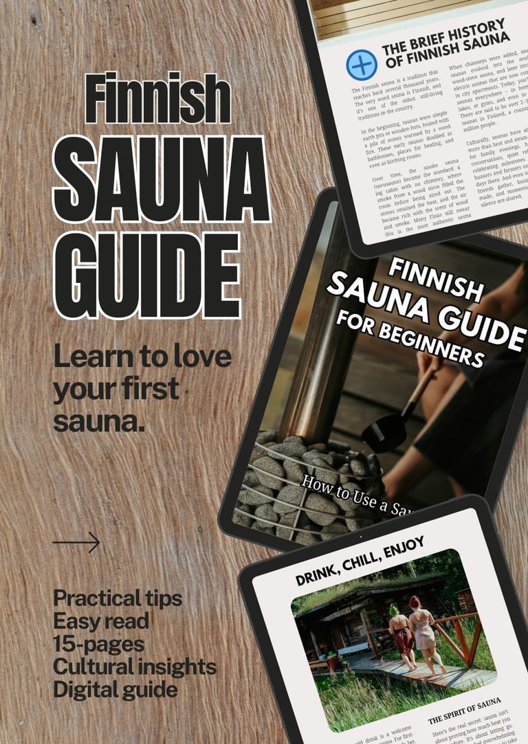 Get the best out of your first sauna experiences with an easy read 15-page Finnish Sauna Guide.